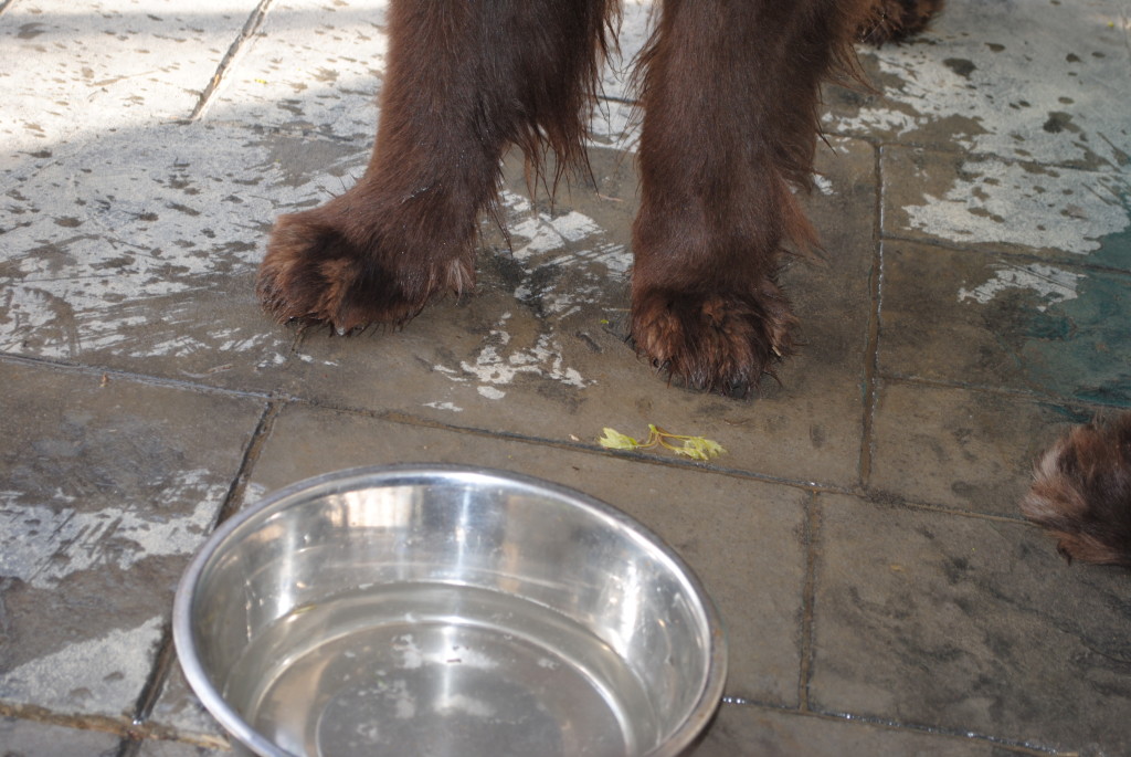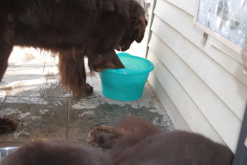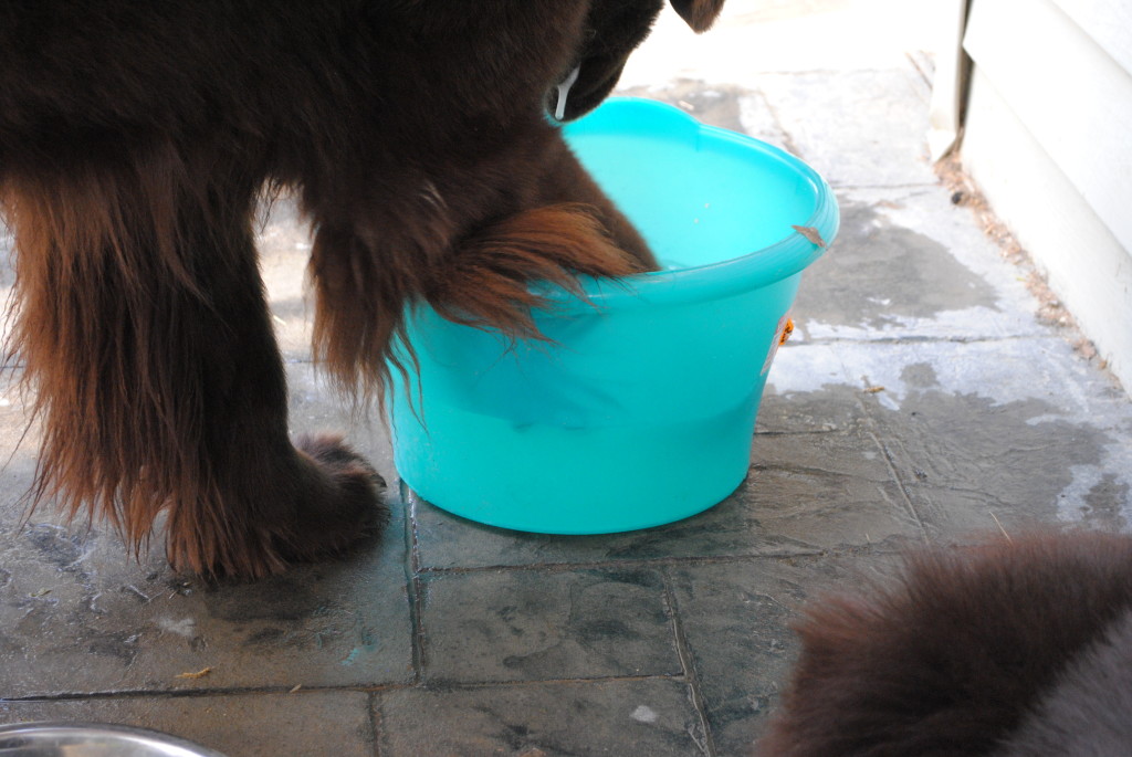 Enter in the idea of using the biggest bucket I can find in the house for an outside water bowl.