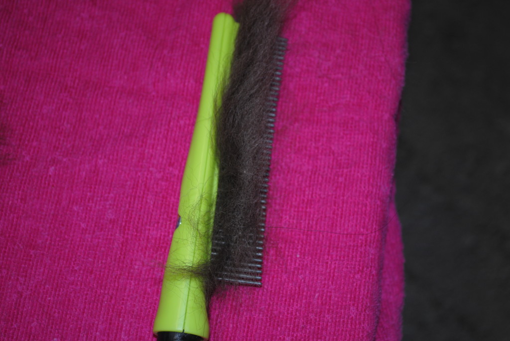 Just look at how much hair the comb pulled out with just a few passes through Sherman’s coat
