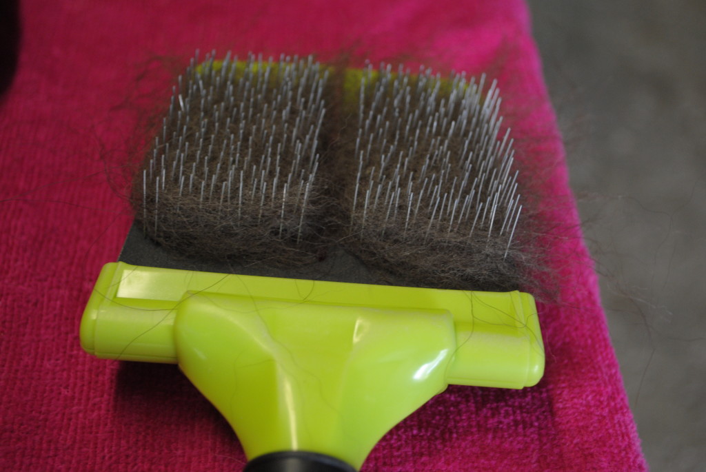 The slicker brush will now join the front line with the rest of my favorite grooming tools.