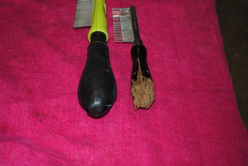 Comfortable handles are important when you do a lot of grooming. I have had my hand cramp many times during a grooming session. I mean look at the comb I was using before I got my new one.