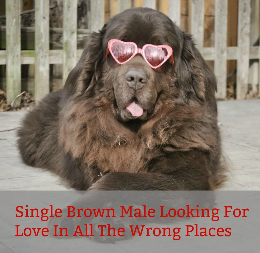 Spunky big boned brown male looking for a date this Sunday. Has a history of looking for love in all the wrong places, meaning he tries to date ladies of the human race instead of ladies from the canine race. Has never attempted to have a romantic relationship with the same species so this is a big and scary step in his canine life.