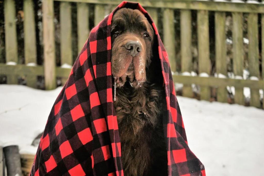 Kind of yes, thread count does matter, buffalo plaid is pretty cool and a Newfie will wear/lay on flannel sheets if someone is holding a treat and telling them to sit still for 5 seconds.