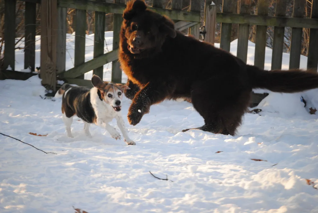 Our Beagle graciously taught Leroy how to play tug-of-war, how to beg, how to hump and how to chase.