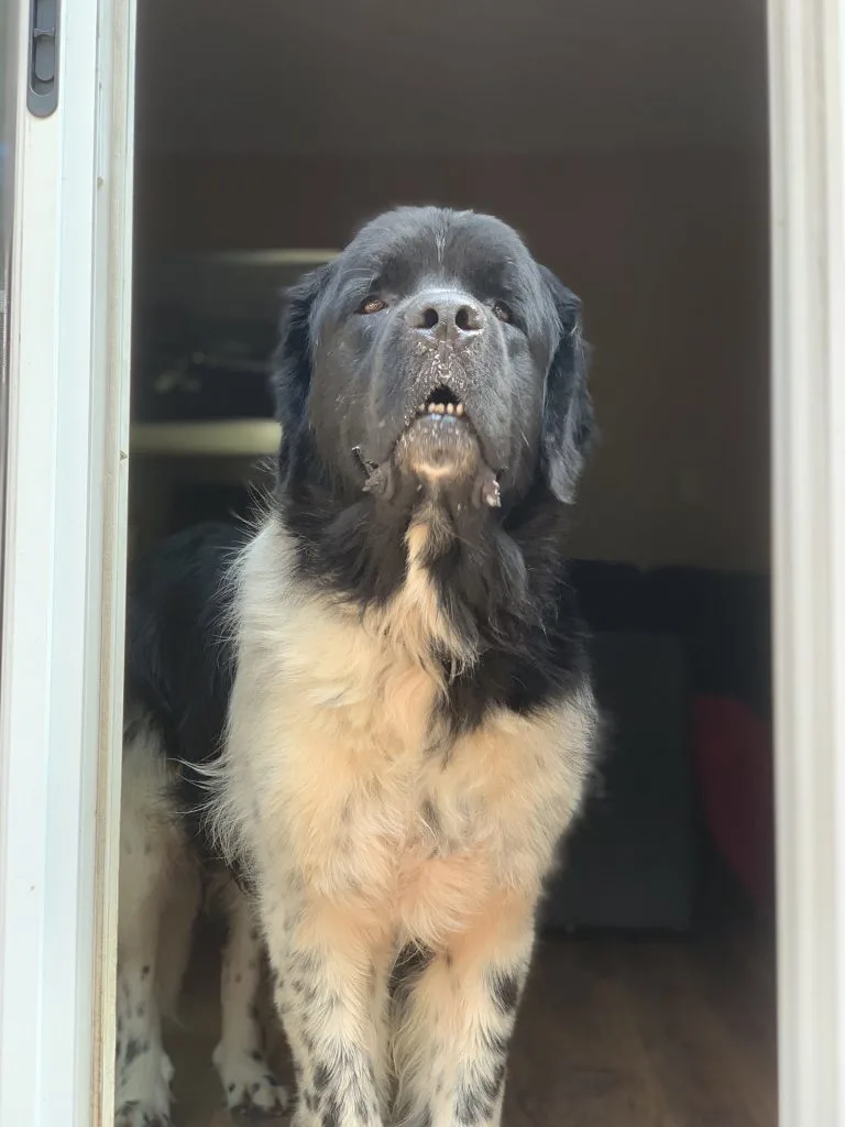 Side note-Odin’s trip to my parent’s house brought tears to my Mom’s eyes because a Landseer hasn’t been in their house since our first Newf.