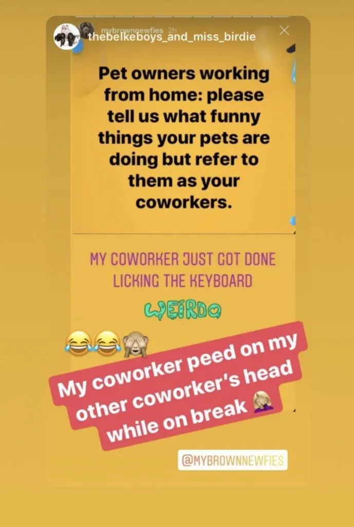 Earlier this week I asked our friends on social media that were now working from home to tell us what funny things their pets were doing but to refer to them as their coworkers.