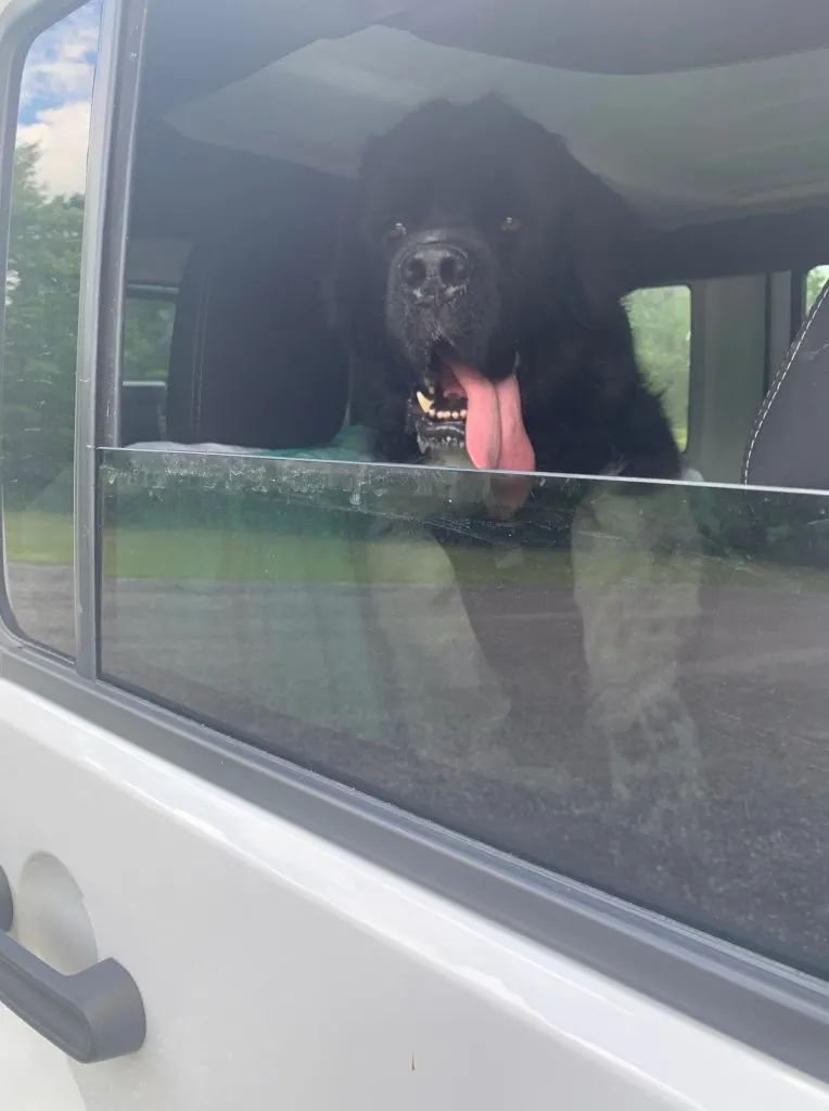 Newfies that hang their head out of the window are bound to fling slobber all down the windows.
