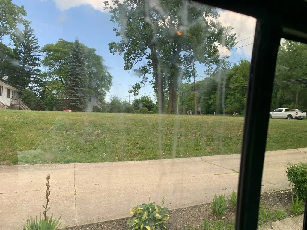 Dried slobber on the inside and outside of the windows.