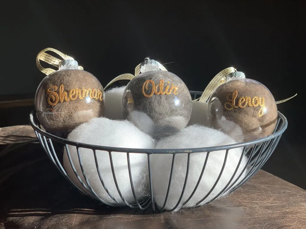 I love this idea and have actually been doing that forever. I have newf fur from even my first newfie, 28 yrs ago. I have used the fur from many to do needle felting, making tiny newfies! Just for me, not to sell. A friend felted a bunch of hers and made a gorgeous red silk lined vest. So many things but I never thought of the ornaments and LOVE that idea...thank you!